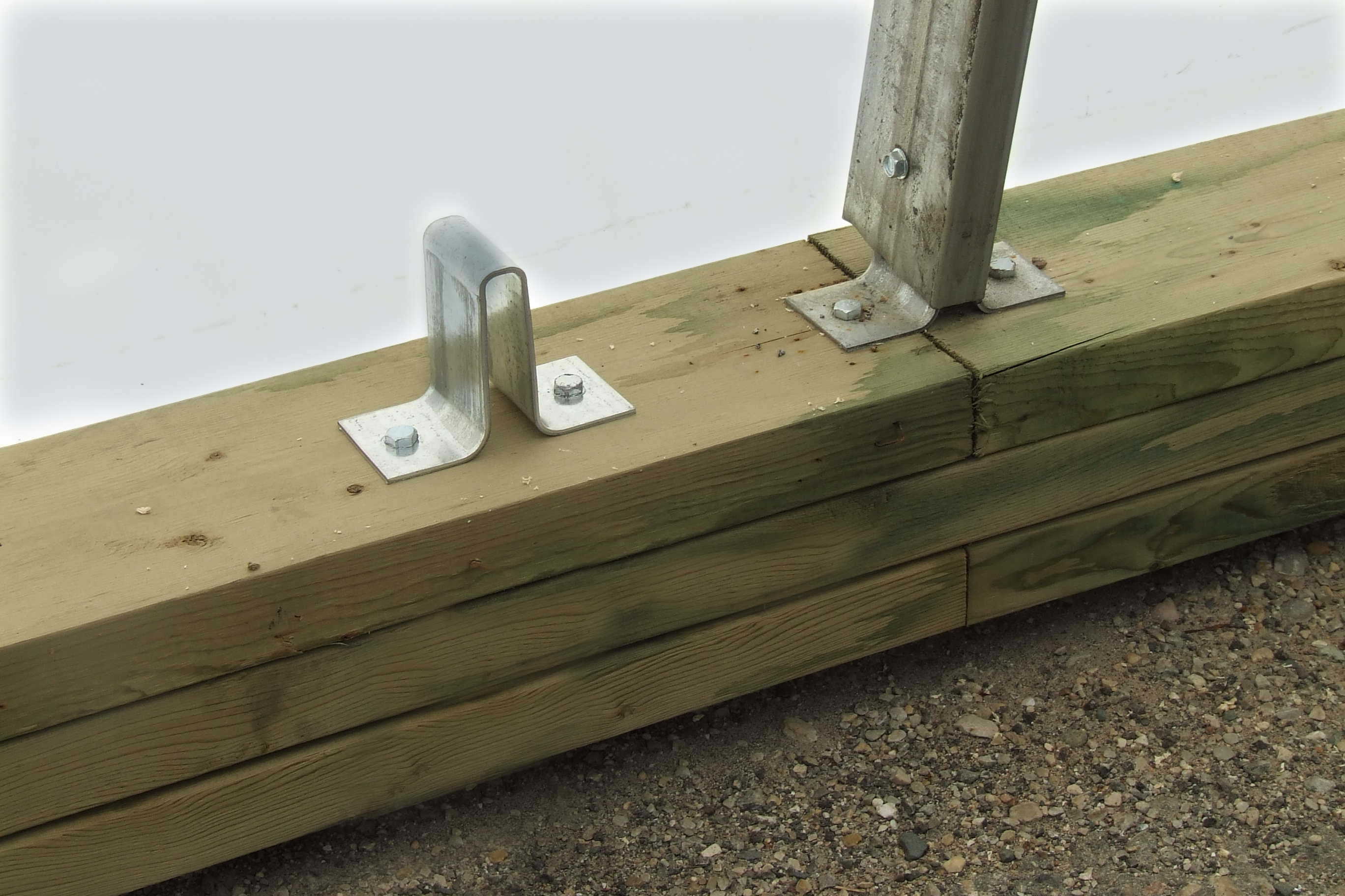 We offer two main types of anchoring for our structures: Base Brackets (left pic) and Anchor Posts (right pic).